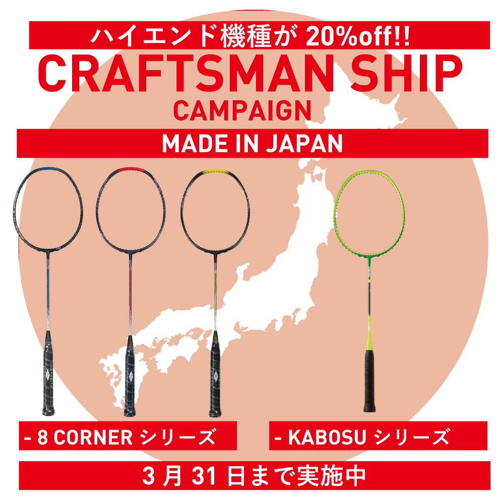 ココンポジットテクノの大分県にある工場で生産したラケットで以下の機種を対象に20%OFFのお得なキャンペーンを行います!